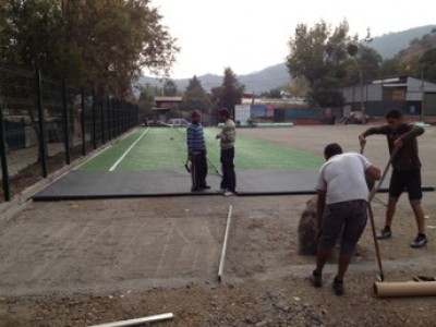 | CANCHA PASTO SINTÉTICO NUEVA LA OBRA Año de construcción: 2012 m2 construidos: 5.500 Características: pasto sintético de fibra certificación FIFA, camarines. Dirección: Mirador 2305, Recoleta. |
